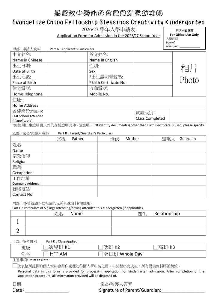 報名表格